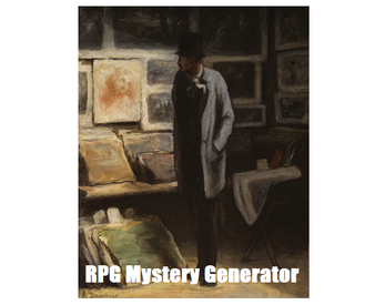 This Mystery Generator is perfect for playing solo, when keeping a secret from yourself is impossible. Or if you want to include a mystery in a game you are running but you are struggling to come up with a complex crime plot with a satisfying conclusion.